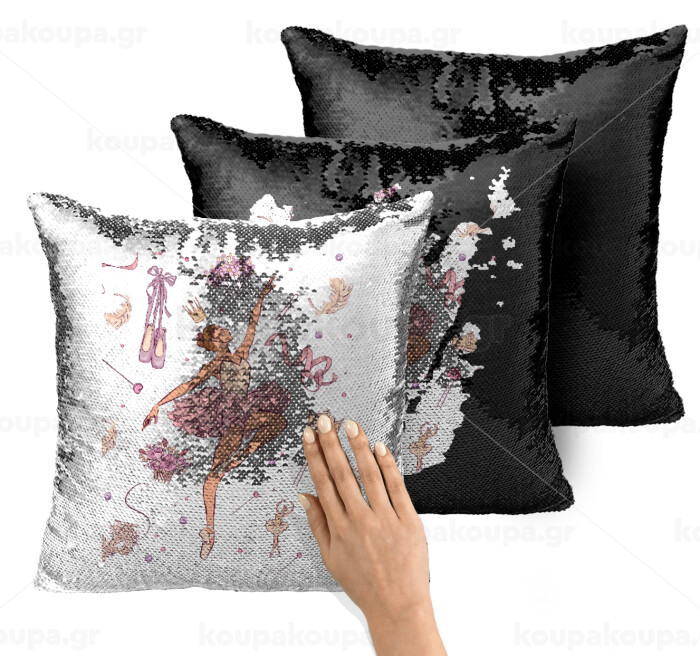 Ballet Dancer, Μαξιλάρι καναπέ Μαγικό Μαύρο με πούλιες 40x40cm περιέχεται το γέμισμα