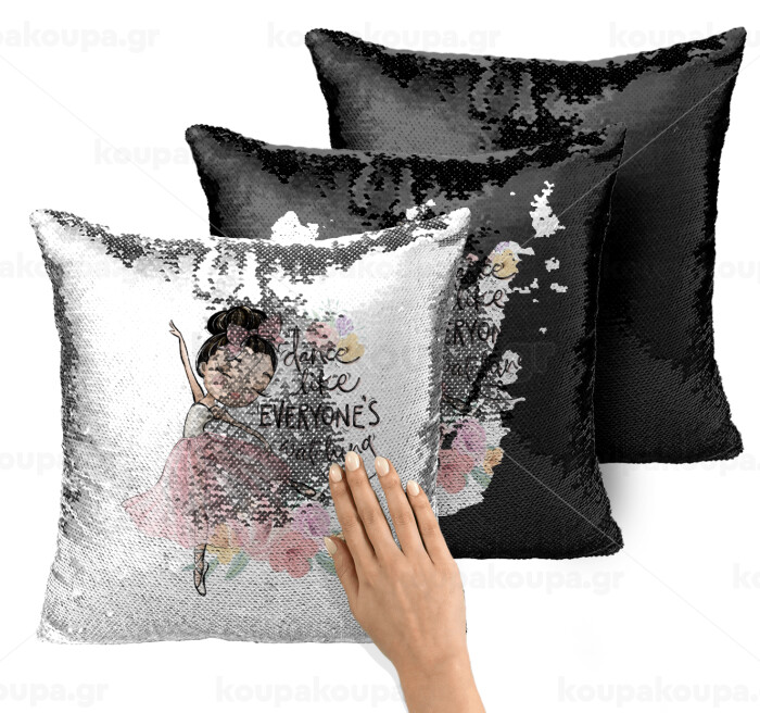 Dance Like everyone's watching, Μαξιλάρι καναπέ Μαγικό Μαύρο με πούλιες 40x40cm περιέχεται το γέμισμα