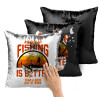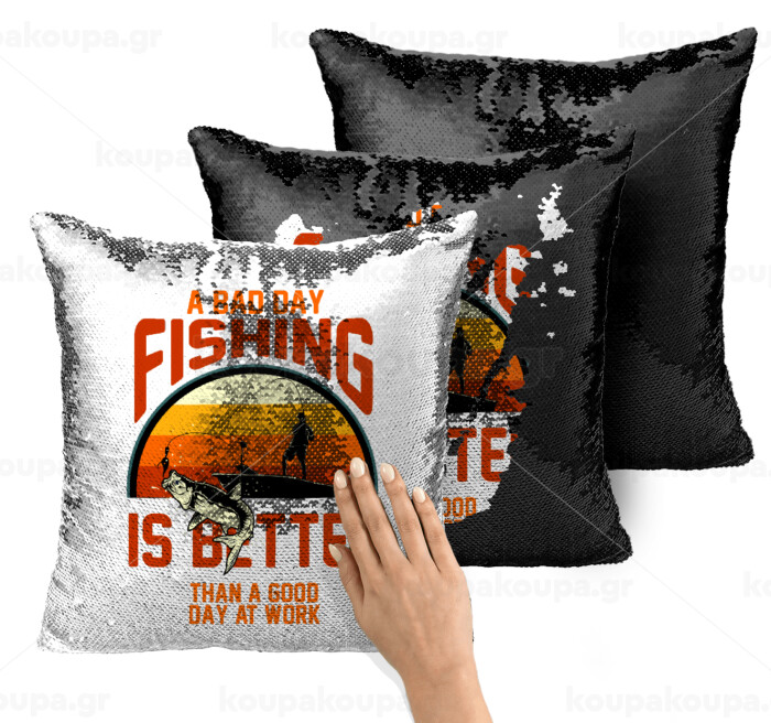 A bad day FISHING is better than a good day at work, Μαξιλάρι καναπέ Μαγικό Μαύρο με πούλιες 40x40cm περιέχεται το γέμισμα