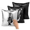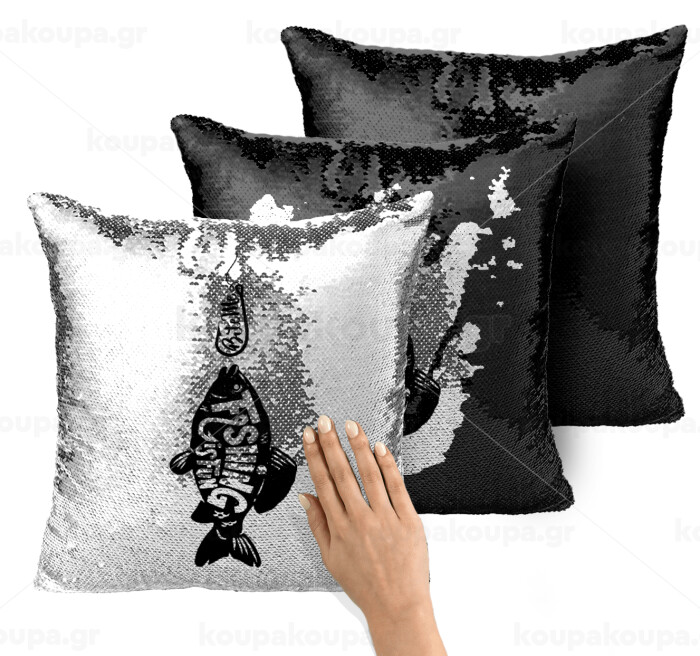Fishing is fun, Μαξιλάρι καναπέ Μαγικό Μαύρο με πούλιες 40x40cm περιέχεται το γέμισμα