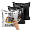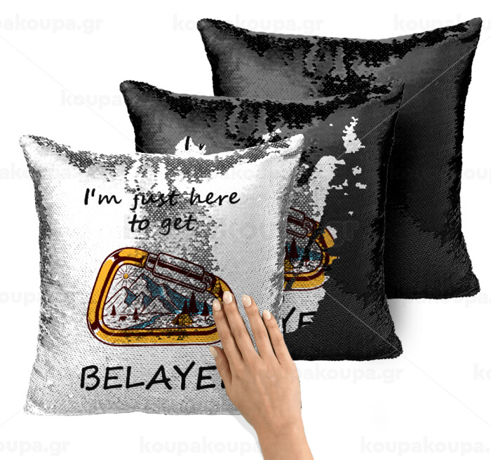I'm just here to get Belayed, Μαξιλάρι καναπέ Μαγικό Μαύρο με πούλιες 40x40cm περιέχεται το γέμισμα