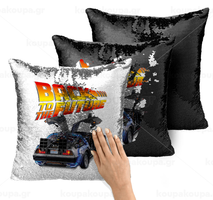 Back to the future, Μαξιλάρι καναπέ Μαγικό Μαύρο με πούλιες 40x40cm περιέχεται το γέμισμα