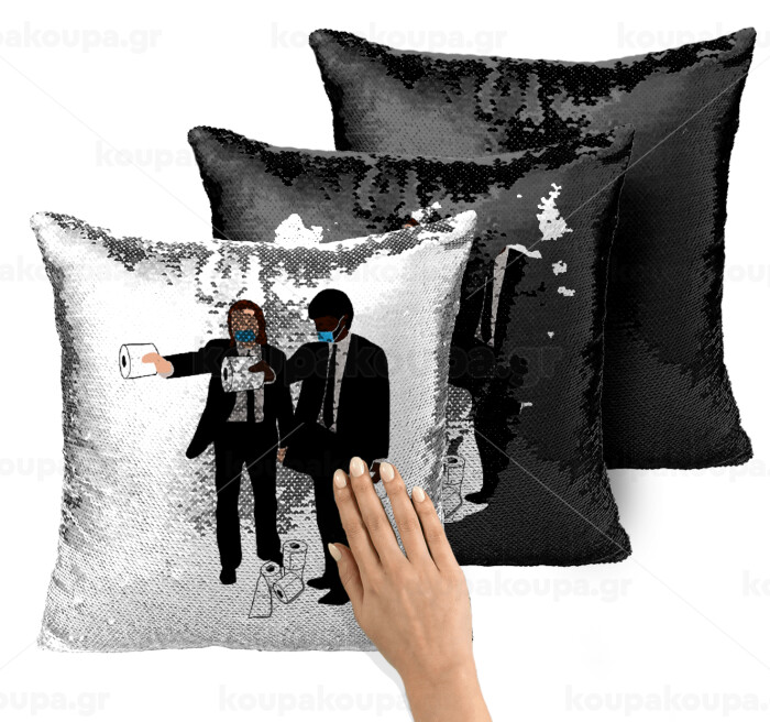 Pulp Fiction 3 meter away, Μαξιλάρι καναπέ Μαγικό Μαύρο με πούλιες 40x40cm περιέχεται το γέμισμα