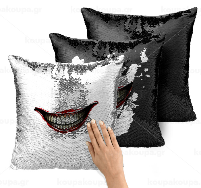 Joker smile, Μαξιλάρι καναπέ Μαγικό Μαύρο με πούλιες 40x40cm περιέχεται το γέμισμα