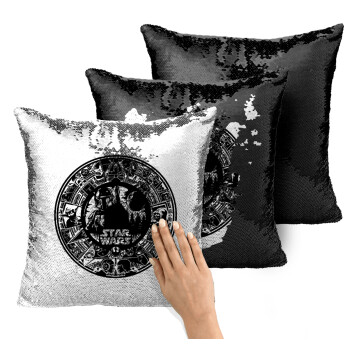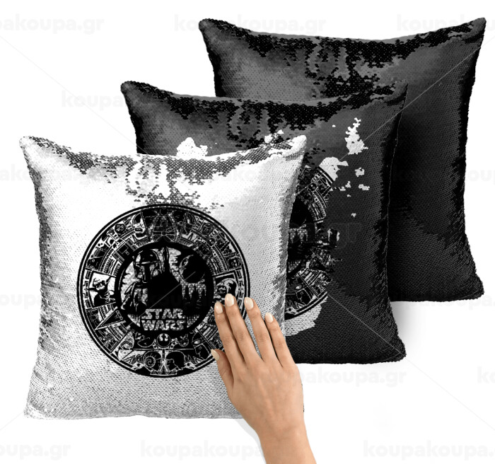 Star Wars Disk, Μαξιλάρι καναπέ Μαγικό Μαύρο με πούλιες 40x40cm περιέχεται το γέμισμα