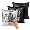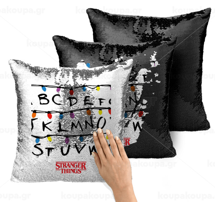 Stranger Things ABC, Μαξιλάρι καναπέ Μαγικό Μαύρο με πούλιες 40x40cm περιέχεται το γέμισμα