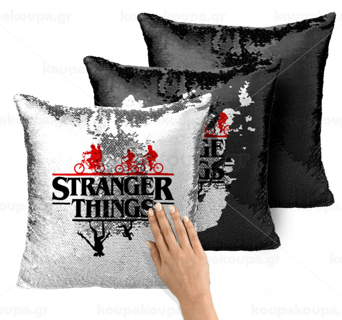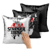 Stranger Things upside down, Μαξιλάρι καναπέ Μαγικό Μαύρο με πούλιες 40x40cm περιέχεται το γέμισμα