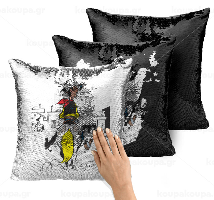 Lucky Luke comic, Μαξιλάρι καναπέ Μαγικό Μαύρο με πούλιες 40x40cm περιέχεται το γέμισμα