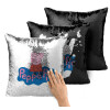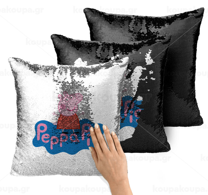 Πέππα το γουρουνάκι μπλε με όνομα, Μαξιλάρι καναπέ Μαγικό Μαύρο με πούλιες 40x40cm περιέχεται το γέμισμα