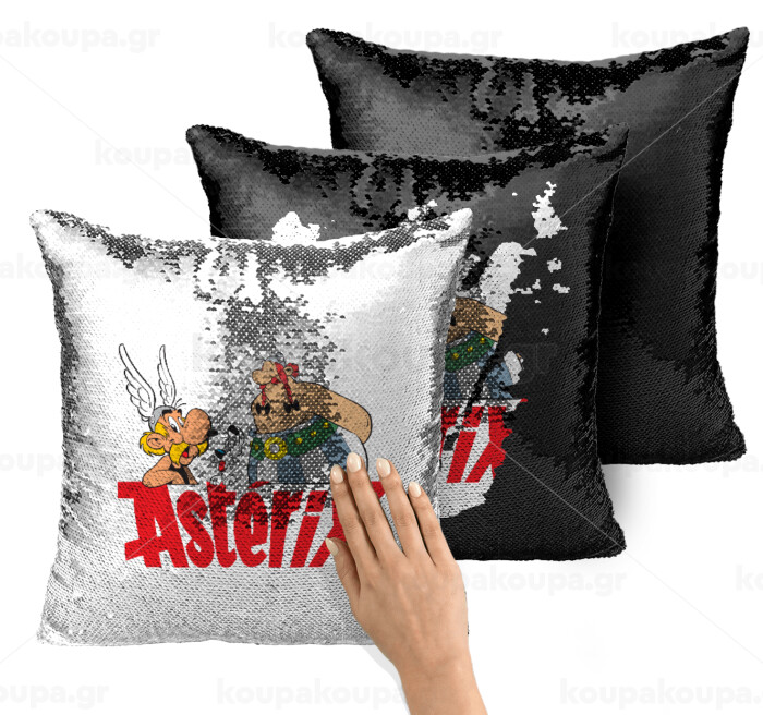 Asterix and Obelix, Μαξιλάρι καναπέ Μαγικό Μαύρο με πούλιες 40x40cm περιέχεται το γέμισμα