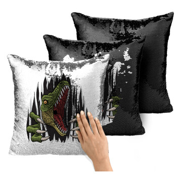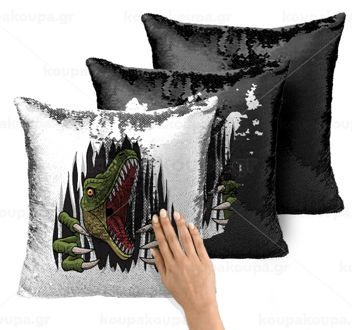 Dinosaur scratch, Μαξιλάρι καναπέ Μαγικό Μαύρο με πούλιες 40x40cm περιέχεται το γέμισμα