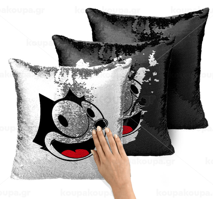 Felix the cat, Μαξιλάρι καναπέ Μαγικό Μαύρο με πούλιες 40x40cm περιέχεται το γέμισμα