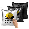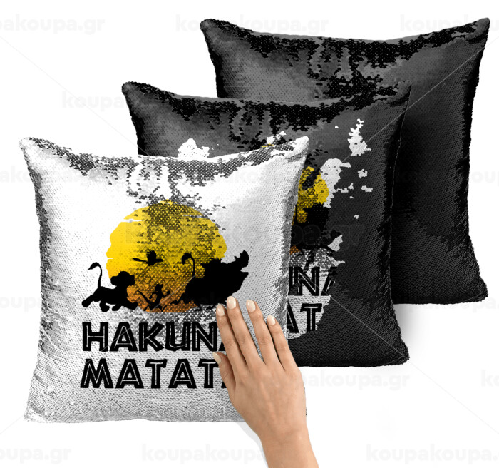 Hakuna Matata, Μαξιλάρι καναπέ Μαγικό Μαύρο με πούλιες 40x40cm περιέχεται το γέμισμα