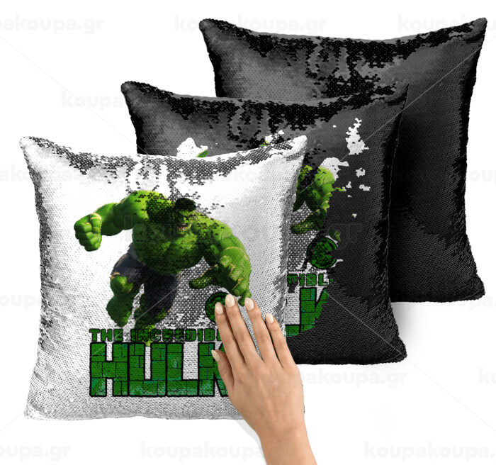 Hulk, Μαξιλάρι καναπέ Μαγικό Μαύρο με πούλιες 40x40cm περιέχεται το γέμισμα