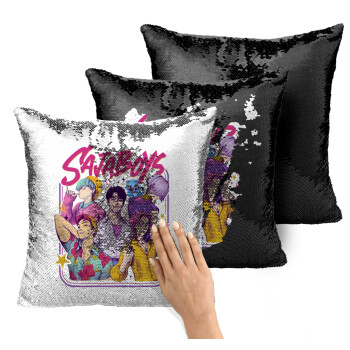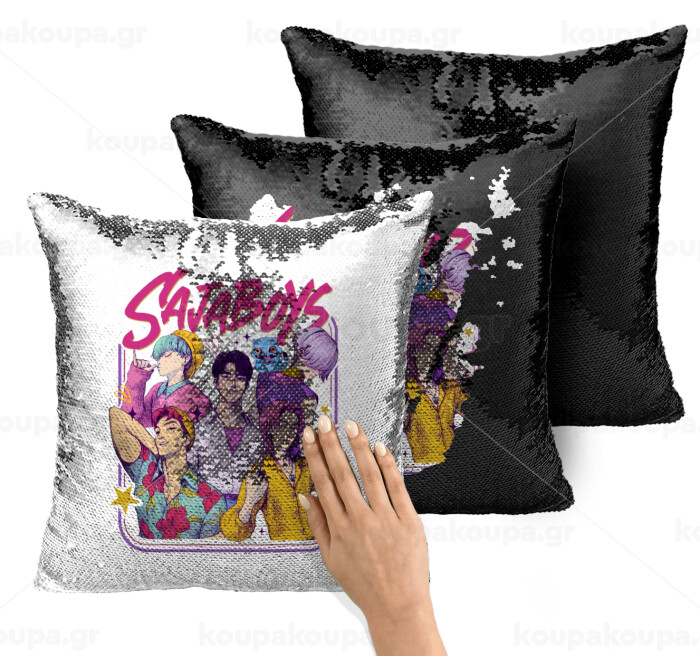 Huntrix Saja Boys, Μαξιλάρι καναπέ Μαγικό Μαύρο με πούλιες 40x40cm περιέχεται το γέμισμα