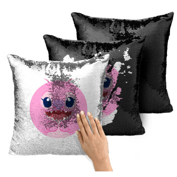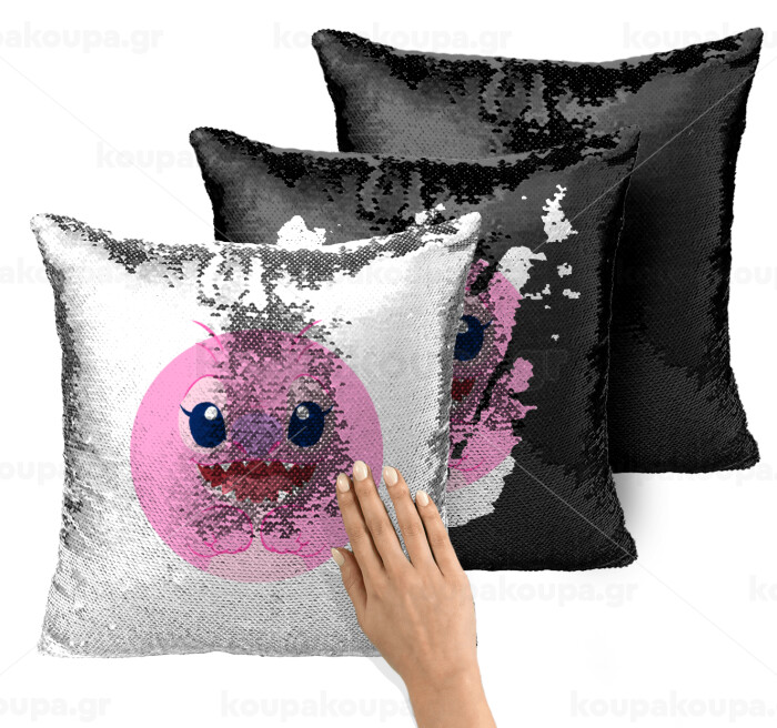 Lilo & Stitch Angel pink, Μαξιλάρι καναπέ Μαγικό Μαύρο με πούλιες 40x40cm περιέχεται το γέμισμα