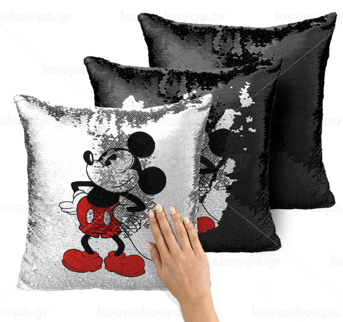Mickey Classic, Μαξιλάρι καναπέ Μαγικό Μαύρο με πούλιες 40x40cm περιέχεται το γέμισμα