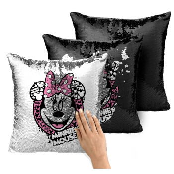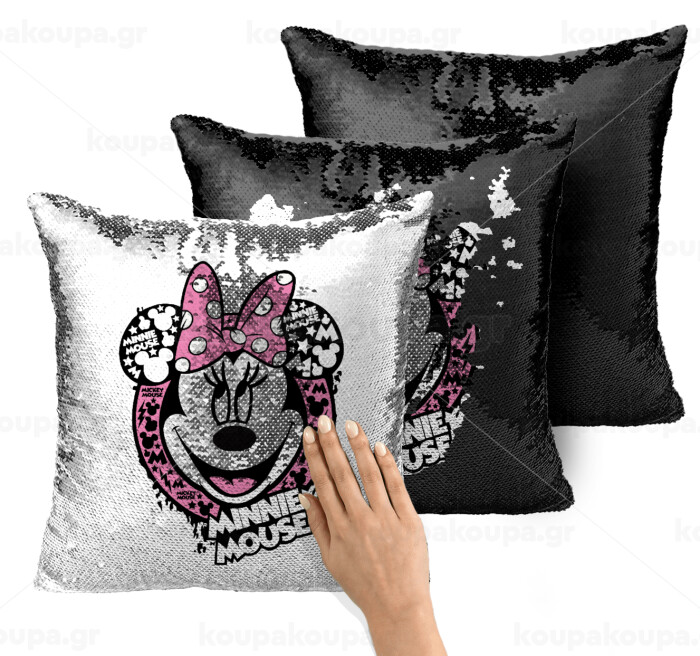 Minnie mouse, Μαξιλάρι καναπέ Μαγικό Μαύρο με πούλιες 40x40cm περιέχεται το γέμισμα