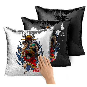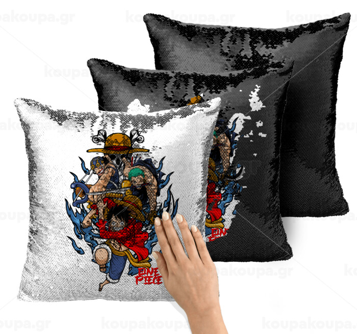 One Piece, Μαξιλάρι καναπέ Μαγικό Μαύρο με πούλιες 40x40cm περιέχεται το γέμισμα