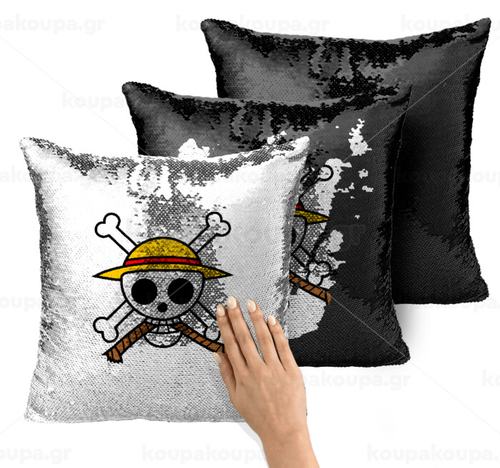 Onepiece skull, Μαξιλάρι καναπέ Μαγικό Μαύρο με πούλιες 40x40cm περιέχεται το γέμισμα