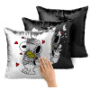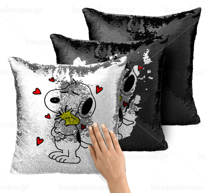Snoopy Love, Μαξιλάρι καναπέ Μαγικό Μαύρο με πούλιες 40x40cm περιέχεται το γέμισμα