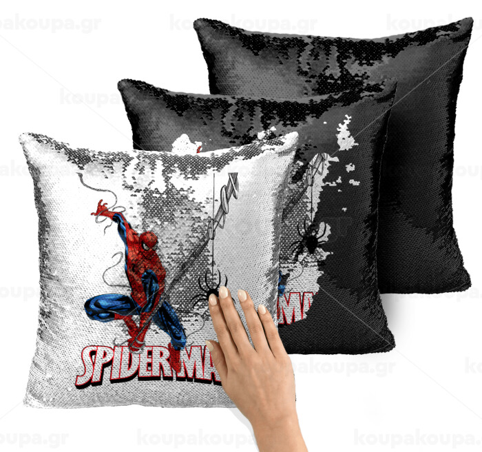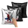 Spiderman fly, Μαξιλάρι καναπέ Μαγικό Μαύρο με πούλιες 40x40cm περιέχεται το γέμισμα