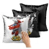Super Wings, Μαξιλάρι καναπέ Μαγικό Μαύρο με πούλιες 40x40cm περιέχεται το γέμισμα