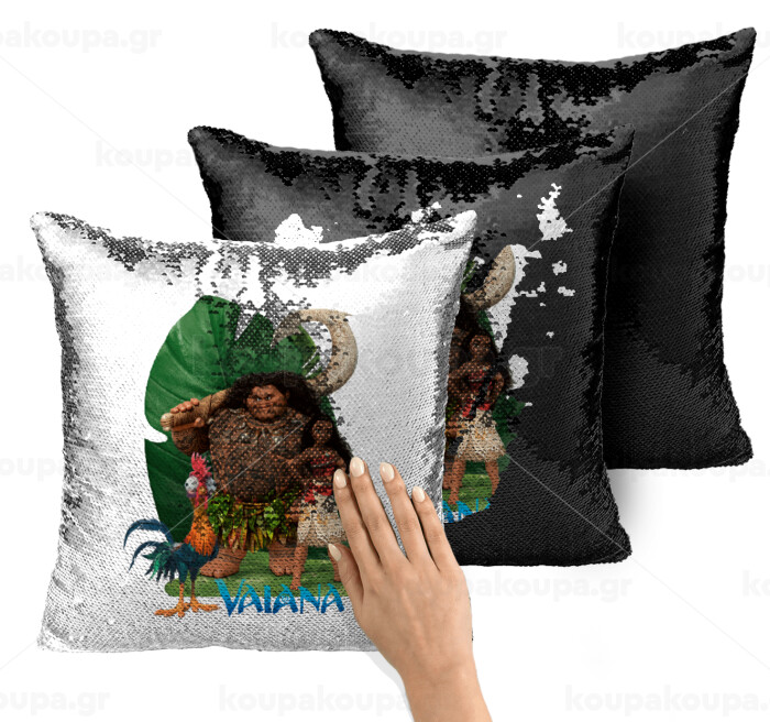 Vaiana, Μαξιλάρι καναπέ Μαγικό Μαύρο με πούλιες 40x40cm περιέχεται το γέμισμα