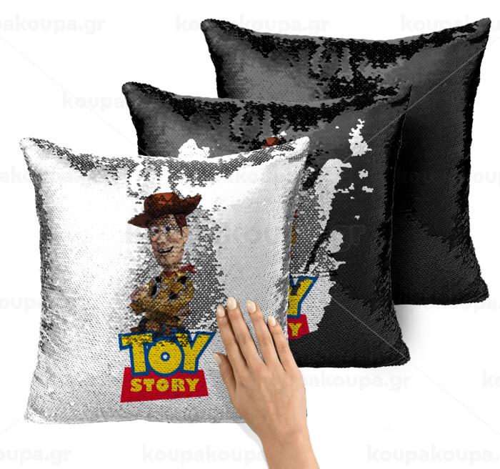 Woody cowboy, Μαξιλάρι καναπέ Μαγικό Μαύρο με πούλιες 40x40cm περιέχεται το γέμισμα