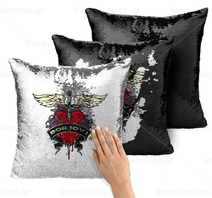 Bon Jovi, Μαξιλάρι καναπέ Μαγικό Μαύρο με πούλιες 40x40cm περιέχεται το γέμισμα