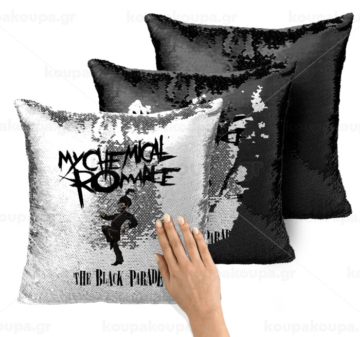 My Chemical Romance Black Parade, Μαξιλάρι καναπέ Μαγικό Μαύρο με πούλιες 40x40cm περιέχεται το γέμισμα