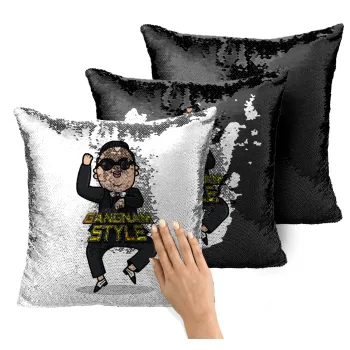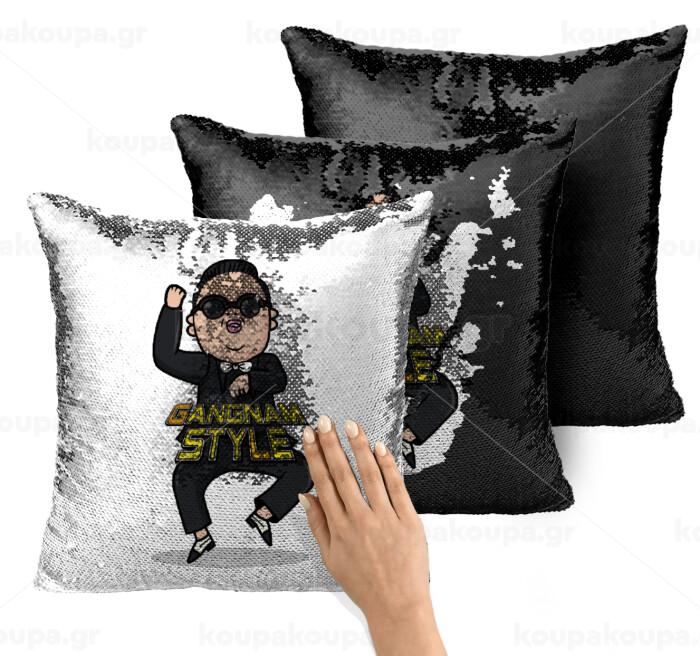 PSY - GANGNAM STYLE, Μαξιλάρι καναπέ Μαγικό Μαύρο με πούλιες 40x40cm περιέχεται το γέμισμα