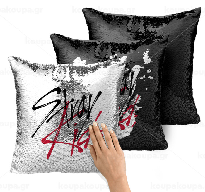 Stray Kids, Μαξιλάρι καναπέ Μαγικό Μαύρο με πούλιες 40x40cm περιέχεται το γέμισμα