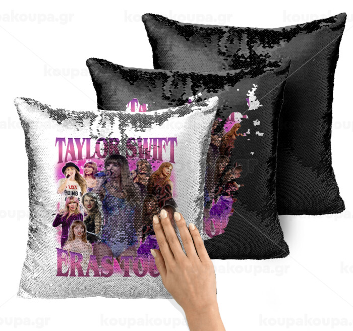 Taylor Swift, Μαξιλάρι καναπέ Μαγικό Μαύρο με πούλιες 40x40cm περιέχεται το γέμισμα
