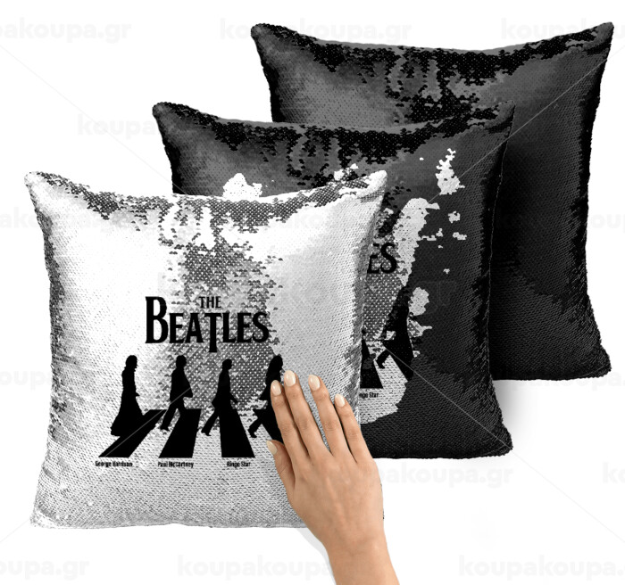 The Beatles, Abbey Road, Μαξιλάρι καναπέ Μαγικό Μαύρο με πούλιες 40x40cm περιέχεται το γέμισμα