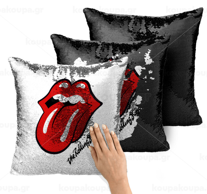 The rolling stones, Μαξιλάρι καναπέ Μαγικό Μαύρο με πούλιες 40x40cm περιέχεται το γέμισμα