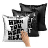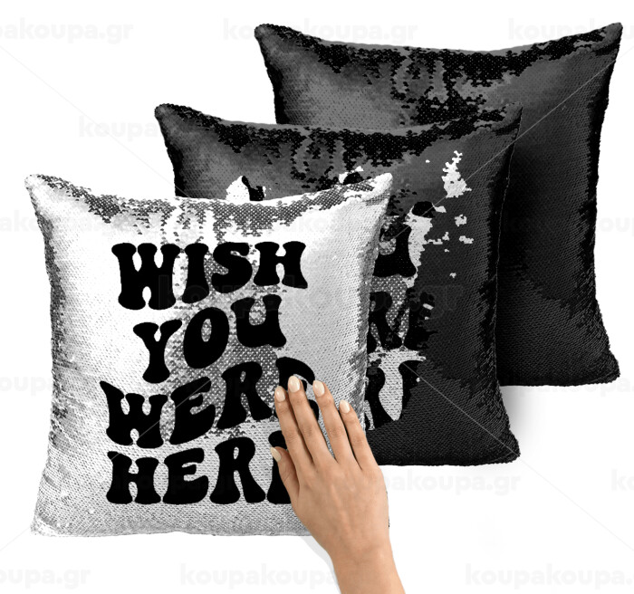 Wish you were here, Μαξιλάρι καναπέ Μαγικό Μαύρο με πούλιες 40x40cm περιέχεται το γέμισμα