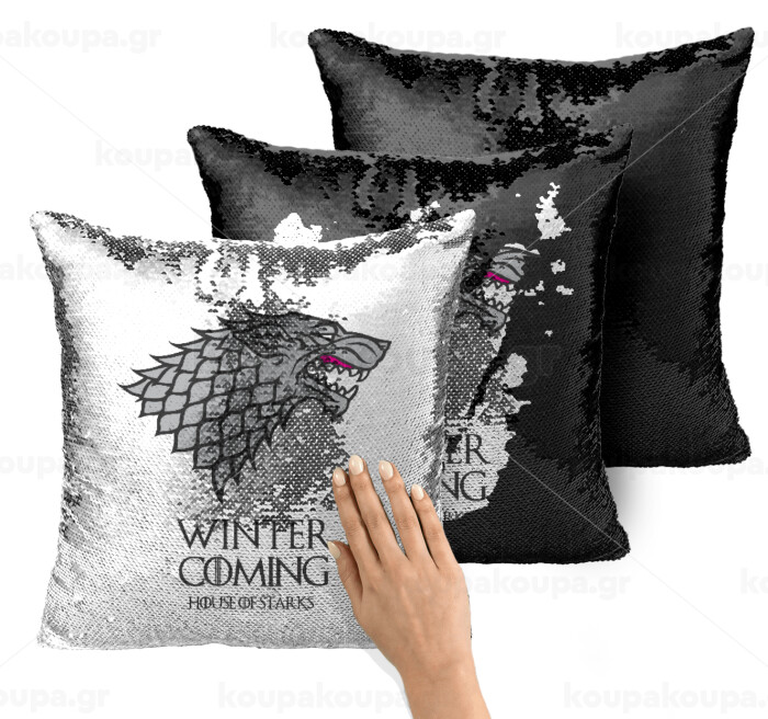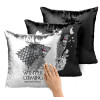 GOT House of Starks, winter coming, Μαξιλάρι καναπέ Μαγικό Μαύρο με πούλιες 40x40cm περιέχεται το γέμισμα