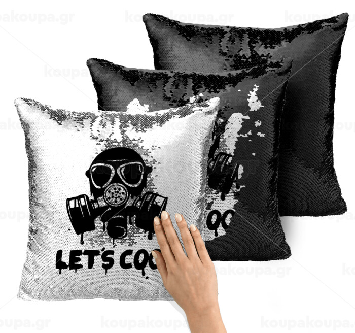 Let's cook mask, Μαξιλάρι καναπέ Μαγικό Μαύρο με πούλιες 40x40cm περιέχεται το γέμισμα