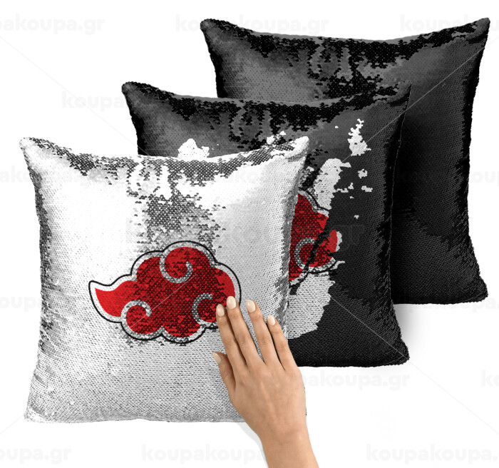 Naruto Akatsuki Cloud, Μαξιλάρι καναπέ Μαγικό Μαύρο με πούλιες 40x40cm περιέχεται το γέμισμα