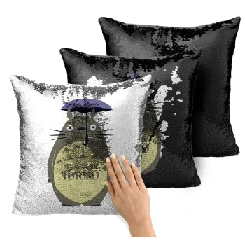 Totoro from My Neighbor Totoro, Μαξιλάρι καναπέ Μαγικό Μαύρο με πούλιες 40x40cm περιέχεται το γέμισμα