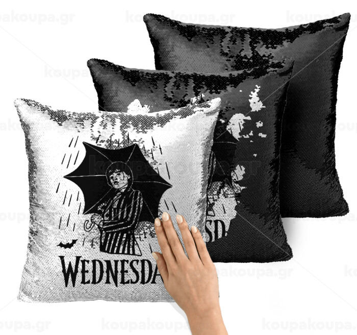 Wednesday Addams, Μαξιλάρι καναπέ Μαγικό Μαύρο με πούλιες 40x40cm περιέχεται το γέμισμα