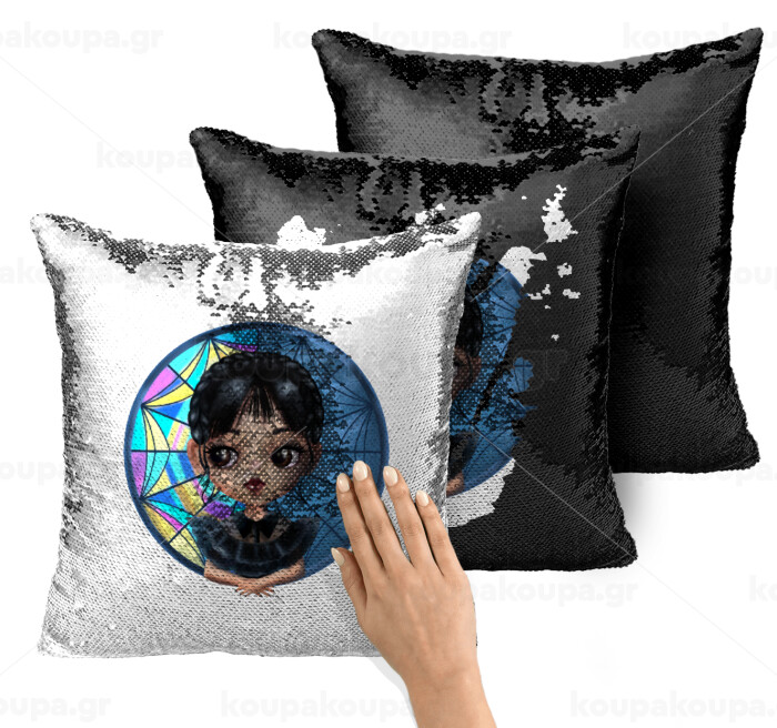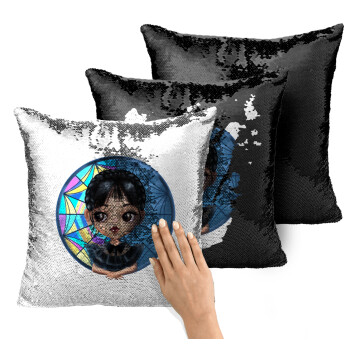 Wednesday big eyes, Μαξιλάρι καναπέ Μαγικό Μαύρο με πούλιες 40x40cm περιέχεται το γέμισμα