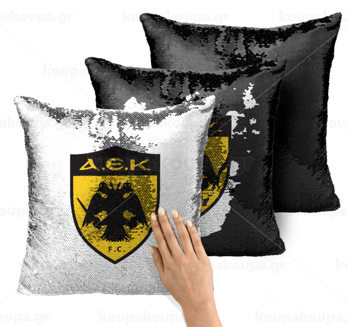 ΑΕΚ, Μαξιλάρι καναπέ Μαγικό Μαύρο με πούλιες 40x40cm περιέχεται το γέμισμα