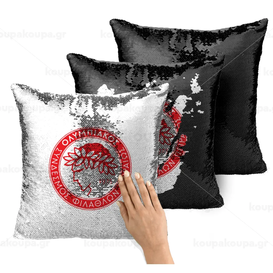 Ολυμπιακός, Μαξιλάρι καναπέ Μαγικό Μαύρο με πούλιες 40x40cm περιέχεται το γέμισμα