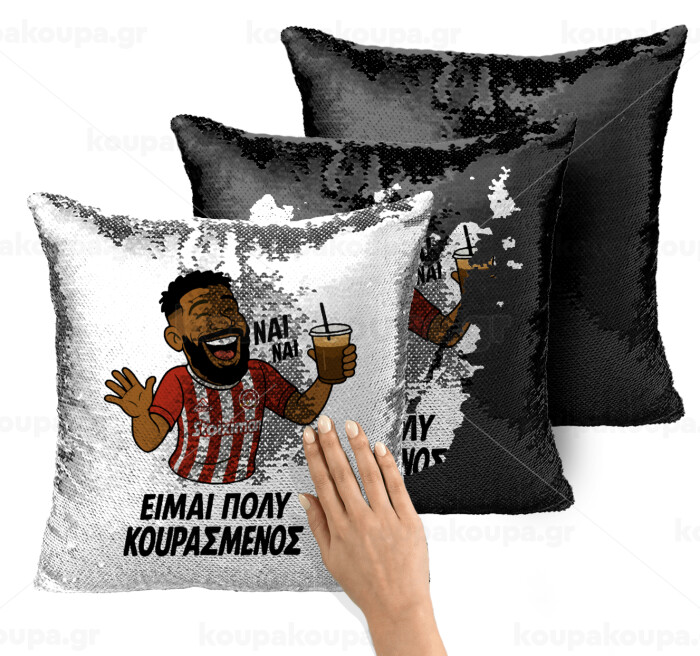 Ροντινέι, "ΠΟΛΥ ΚΟΥΡΑΣΜΕΝΟΣ", Μαξιλάρι καναπέ Μαγικό Μαύρο με πούλιες 40x40cm περιέχεται το γέμισμα