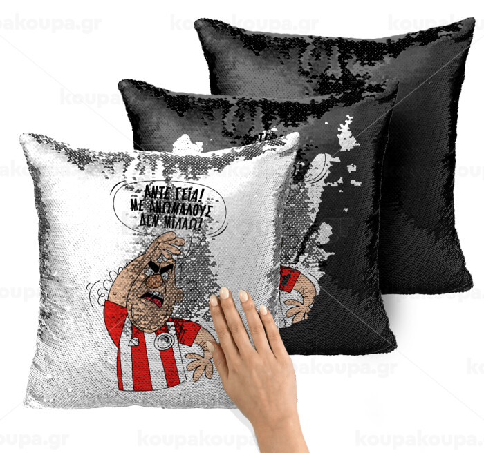 Τάκης, Άντε γεια, με ανώμαλους δεν μιλάω!, Μαξιλάρι καναπέ Μαγικό Μαύρο με πούλιες 40x40cm περιέχεται το γέμισμα