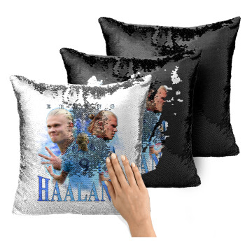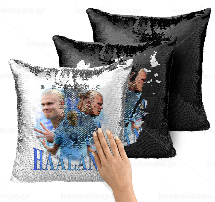 Erling Haaland, Μαξιλάρι καναπέ Μαγικό Μαύρο με πούλιες 40x40cm περιέχεται το γέμισμα