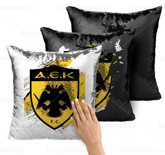 FC Α.Ε.Κ., Μαξιλάρι καναπέ Μαγικό Μαύρο με πούλιες 40x40cm περιέχεται το γέμισμα