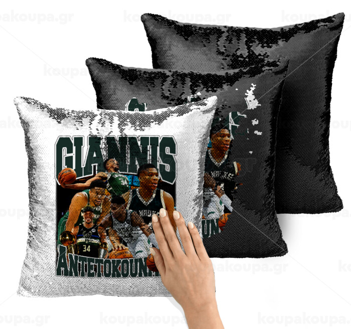 Giannis Antetokounmpo, Μαξιλάρι καναπέ Μαγικό Μαύρο με πούλιες 40x40cm περιέχεται το γέμισμα
